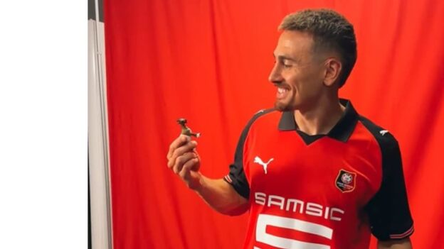En marge de sa présentation comme nouveau joueur du Stade Rennais lundi, Valentin Rongier a reçu un petit cadeau de la part de son nouveau club: une chèvre en figurine en référence aux chambrages passés de l’ancien Nantais contre son nouveau club.