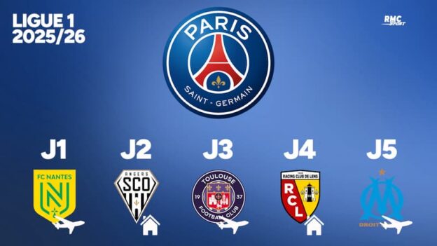 Découvrez les premières journées de la saison 2025/26 du PSG, de l’OM, l’AS Monaco, l’OGC Nice, Lille, l’OL et le RC Strasbourg.