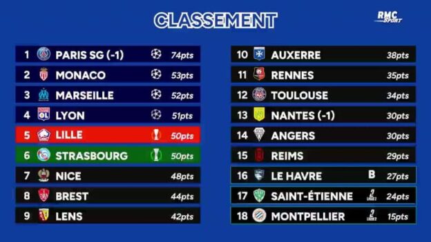 Monaco a repris la place de dauphin en étrillant l’OM (3-0) à Louis II. Une défaite et une fragilité qui tombent bien mal dans ce sprint final. Parce que Lyon vainqueur d’Auxerre est revenu à un point des Phocéens. Strasbourg et Lille sont en embuscade. Cette lutte pour la Ligue des champions sera sans doute totalement indécise jusqu’au bout. Découvrez les calendriers des prétendants à la compétition européenne de Monaco 2e à Nice 7e.