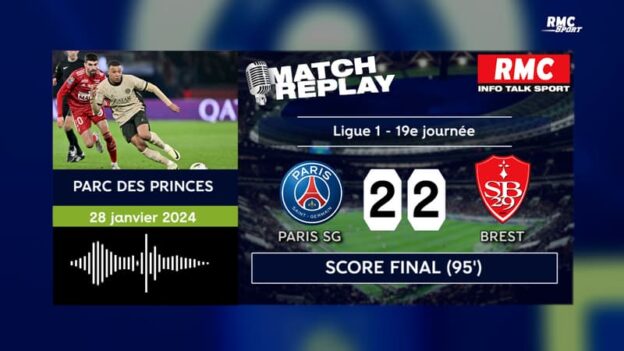 Le PSG a concédé le nul sur sa pelouse face à Brest ce dimanche soir, en clôture de la 19e journée de Ligue 1 (2-2). Les Parisiens menaient pourtant de deux buts à la pause. Revivez les meilleurs moments de la rencontre avec les commentaires RMC.